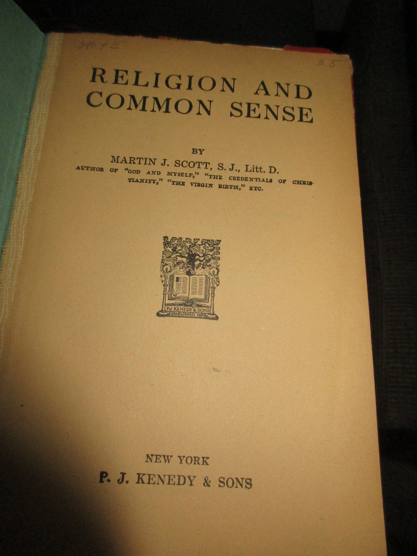 “The purpose of this volume is to view the teaching of the Catholic Church through the eyes of common sense,” writes Fr. Scott in this volume of his Library of Popular Apologetics series. “Under this test the Church of the ages will be found to be built on solid rock” ( from the preface). No mention of “accompaniment” or “dialogue.” Religion and Common Sense by Martin J. Scott, S.J. (NY: P.J. Kenedy & Sons, 1926, sc, 1926 Cdl. Hayes imprimatur). Here in hardcover from ABE; doesn’t appear to have been reprinted.