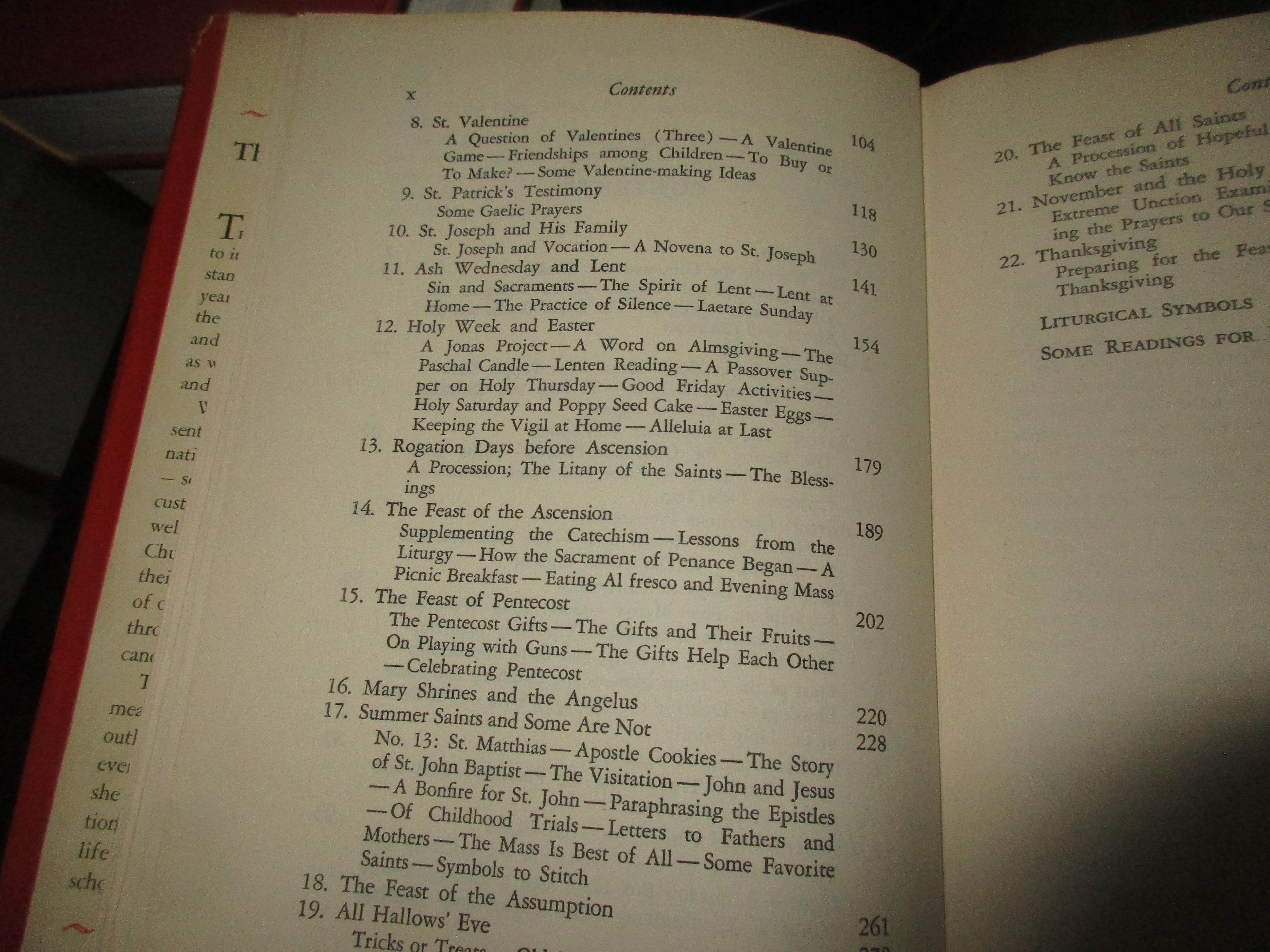 Mary Reed Newland’s The Year and Our Children: Planning the Family Activities for Christian Feasts and Seasons (NY: P.J. Kenedy and Sons, 1956, cloth, 1956 imprimatur) is a lovely resource for families teaching their children the Faith. Includes illustrations and suggested readings, as well as appendix with saints and their symbols. This would partner well with Maria von Trapp’s Around the Year With the von Trapp Family. Newland’s book is available in a new edition.