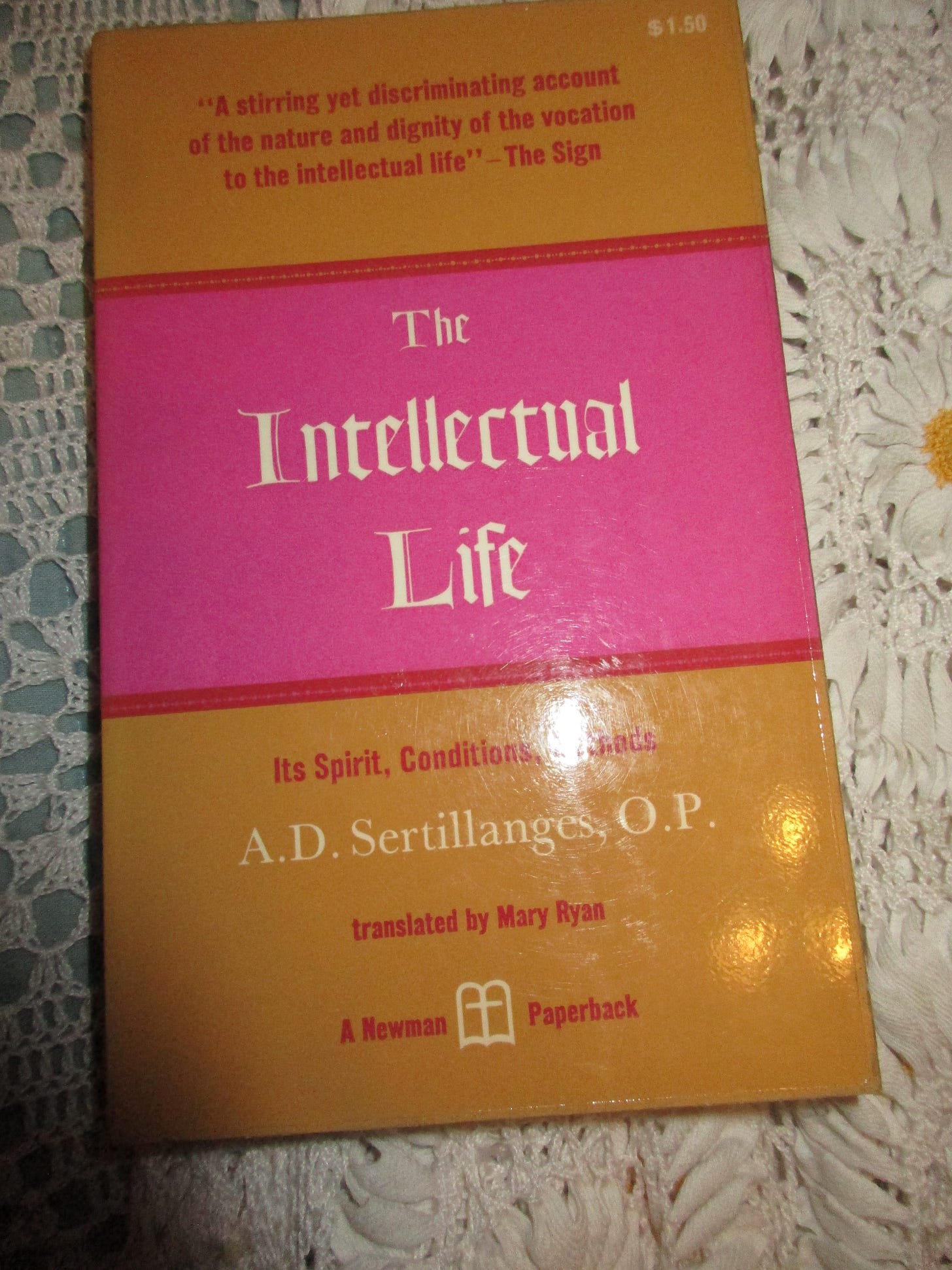 This one’s pretty well-known: The Intellectual Life: Its Spirit, Conditions, Methods by A.D. Sertillanges, OP (Westminster, MD: Newman, 1962, pb, 1946 imprimatur). Theoretical and practical helps for the work of the mind. In print in 1992 from CUA Press.