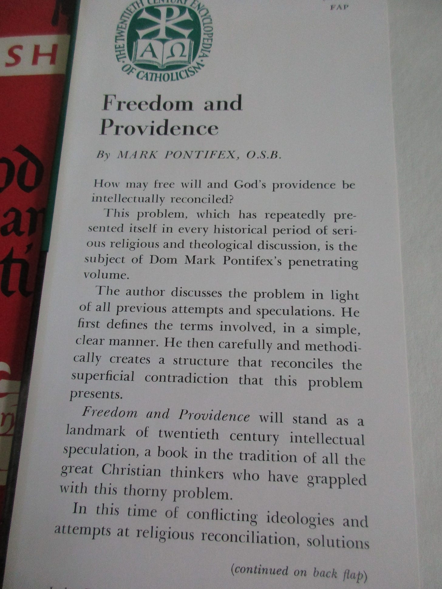 Freedom and Providence by Mark Pontifex, O.S.B. (NY: Hawthorn, 1960, hc, 1960 imprimatur, #22 in The Twentieth Century Encyclopedia of Catholicism. On the Internet Archive.