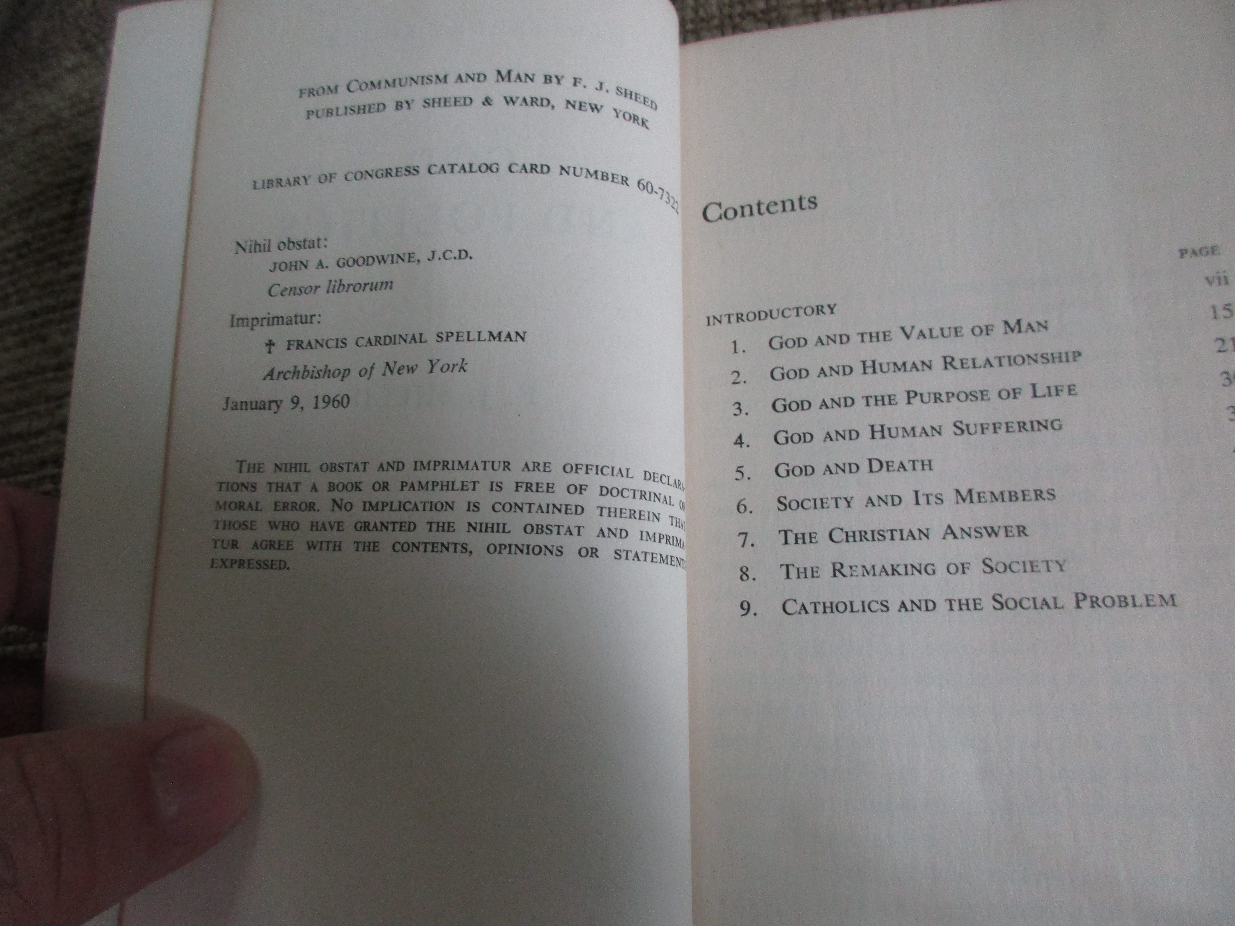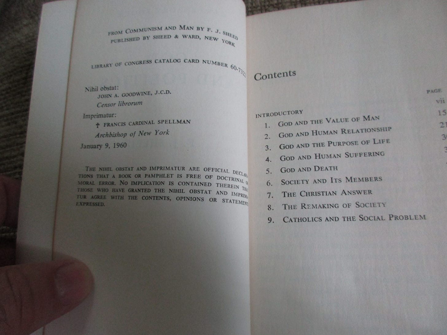 God and Politics by F.J. Sheed (NY: Sheed & Ward, n.d., 1960 Cdl. Spellman imprimatur, pb. Excerpted from Sheed’s Communism and Man. On Goodreads.