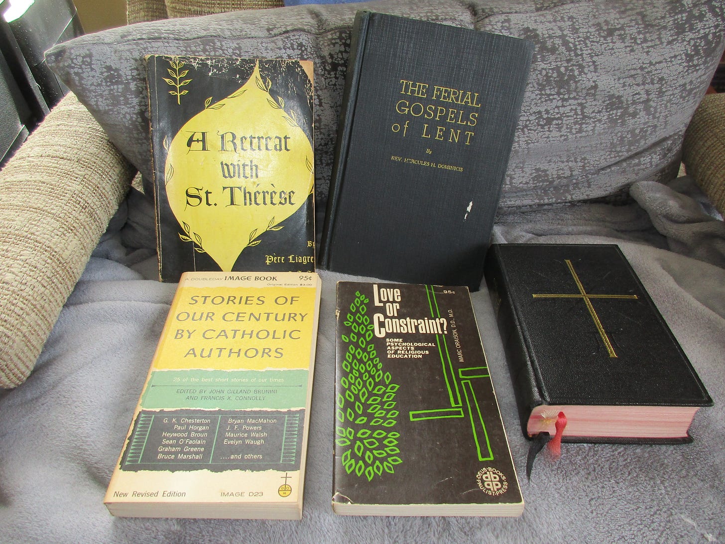 Some of these books I have read, but many I have not. I scored three tremendous hauls of books in the past two years (parish book store, estate sale, etc.).